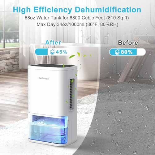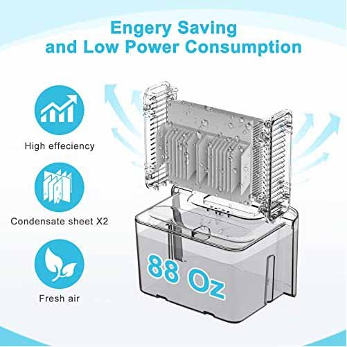 1. Double semiconductor design which can keep areas up to 810 Sq.ft and quickly remove up to 34oz of water per day, better efficiency.