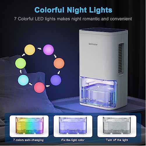3. Muti-colorful lights are available, whether you like a single color or multiple colors, the dehumidifier can meet all your needs.