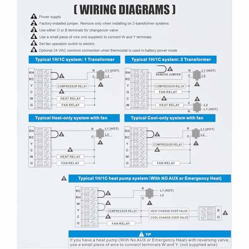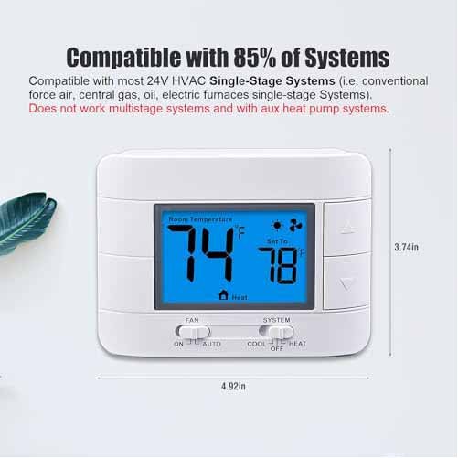 Compatible with most 24V HVAC single-stage systems (i.e. conventional force air, central gas, oil, electric furnaces single-stage Systems). Does not work multistage systems and with aux heat pump systems. |