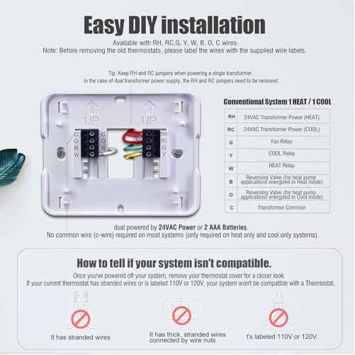 Not compatible with 110-240V HVAC systems (like electric baseboard heat, convector, radiant or line voltage systems). Not compatible with RV thermostat and Heat Pump systems (with aux or emergency heat). |