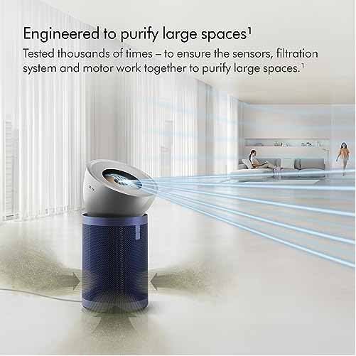 The Dyson Purifier Big+Quiet Formaldehyde is our biggest purifier yet, engineered from the ground up, to evenly purify large spaces.¹ Cone aerodynamics creates a condensed jet of air to project purified air over 32 feet. Quietly. An advanced 360 HEPA H13 grade filter captures allergens and 99.97% of fine particles. Removes gases and odors.² Destroys formaldehyde, permanently.³