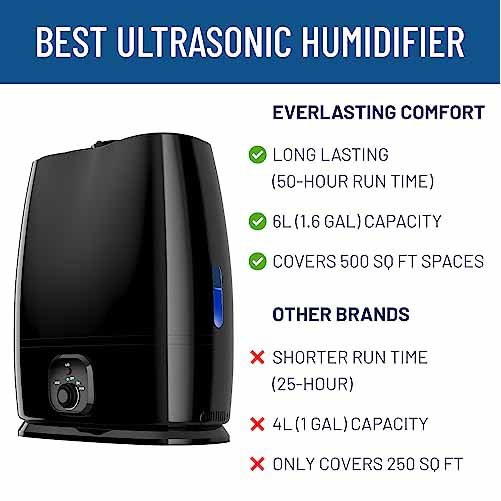 Can run up to 50 hours* meaning fewer refills and less maintenance than other similar humidifiers