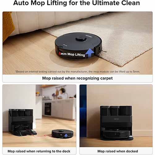 • Auto Mop Lifting for the Ultimate Clean: Vacuum carpets and mop floors at the same time with Auto Mop Lifting. Your robot vacuum can tell the difference between hard floors and carpets and will automatically lift and lower the mop as needed.
