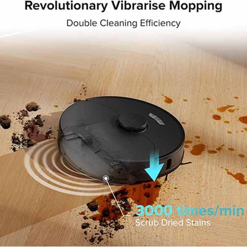 • VibraRise Mopping System : Removes dried stains 30% more effectively than traditional robot mops with sonic scrubbing at 3000 times per minute, and combined with consistently high downward pressure, leaves less dirt behind than spinning mops. If the floor is dirty, please change the mop washing mode to “Deep” in the app for better cleaning.